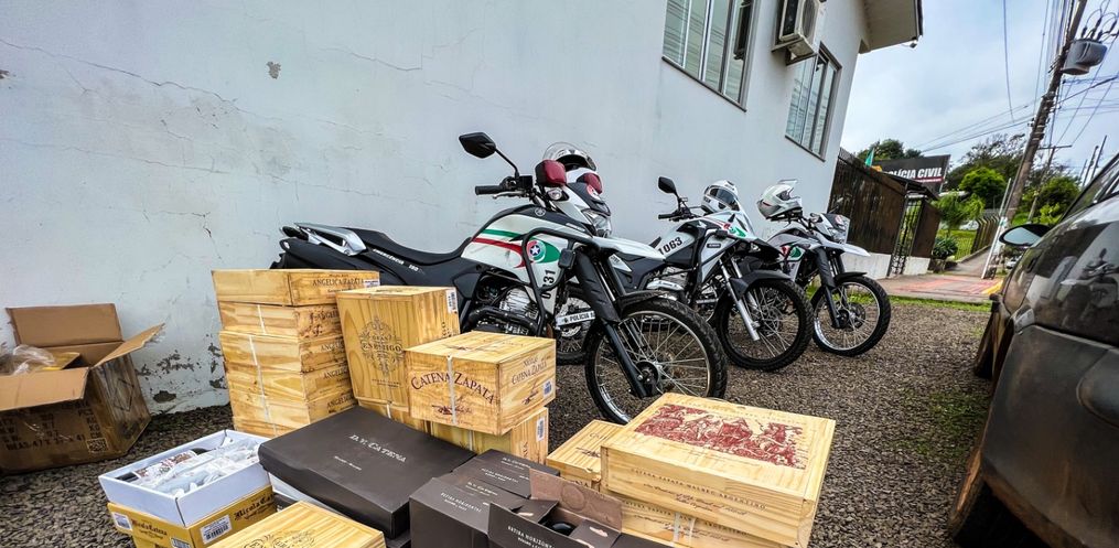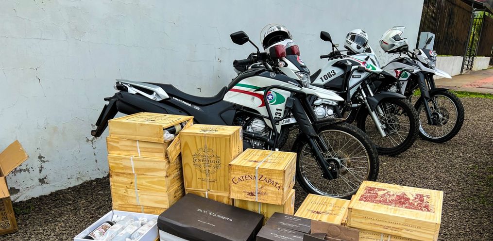 Durante busca veicular, a guarnição de policiamento com motos localizou dentro do carro 30 caixas de vinho oriundas da Argentina, totalizando 142 garrafas, mercadoria essa, sem os devidos despachos aduaneiros.