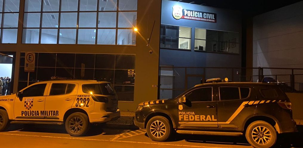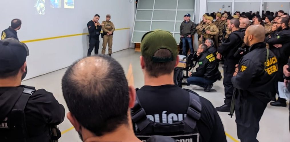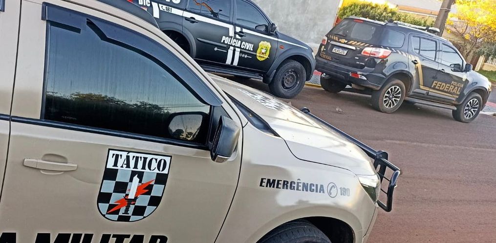 Na ação de hoje 30 Policiais Federais, 20 Policiais Civis e 35 Policiais Militares, estão dando cumprimento a quatro mandados de prisão temporária e dez mandados de busca e apreensão, expedidos pela Vara Criminal de Chapecó, nas cidades de Chapecó/SC, Planalto Alegre/SC e Foz do Iguaçu/PR.