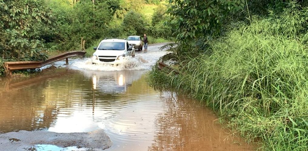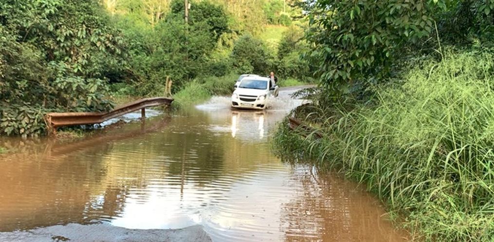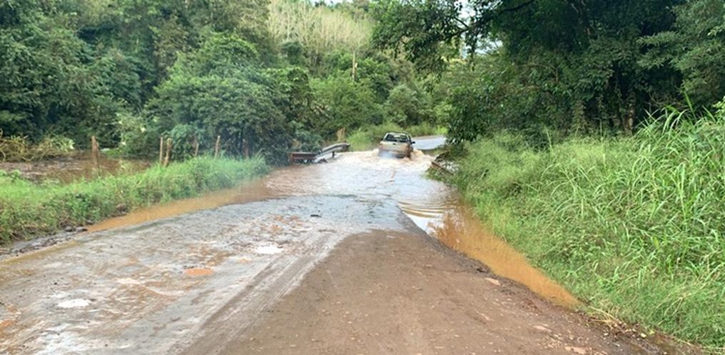 Com as frequentes chuvas, a ponte entre as comunidade de Dourado e Sede Capela, na Estrada Beira Rio, SC 283, foi bloqueada para passagens de veículos pequenos. A reportagem da Rede Peperi realizou o registro da cheia desde a manhã desta quarta-feira, 04.
