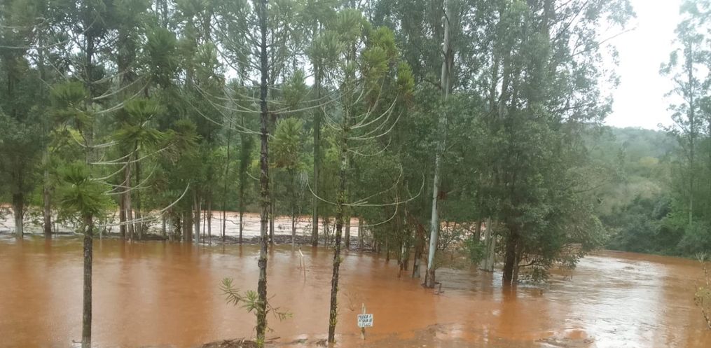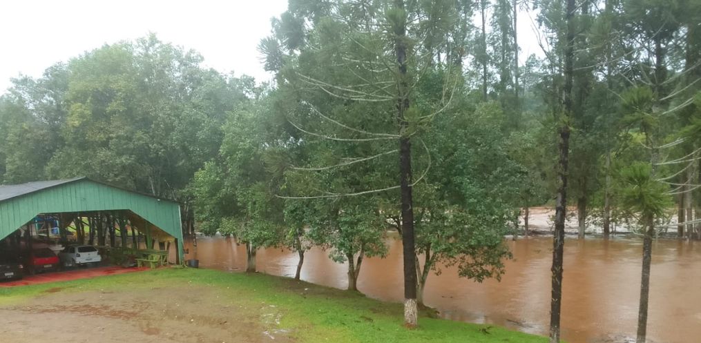 Propriedades as margens do Rio Peperi-Guaçu registraram danos devido a enchente.