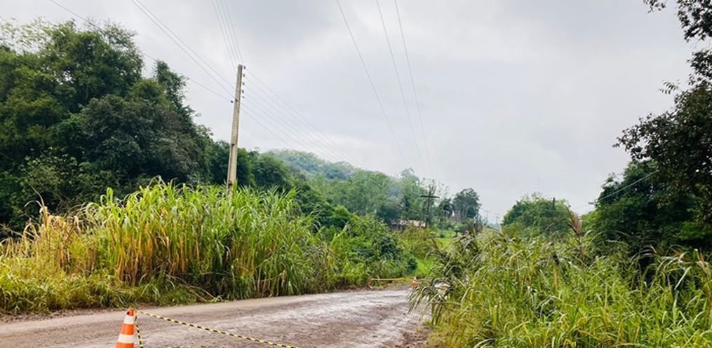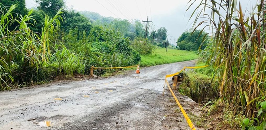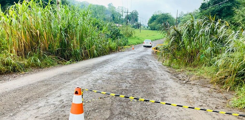 Passagem de veículos foi interrompido na manhã desta terça-feira, 31, na SC 283, Estrada Beira Rio, na localidade de Santa Fé Baixa.