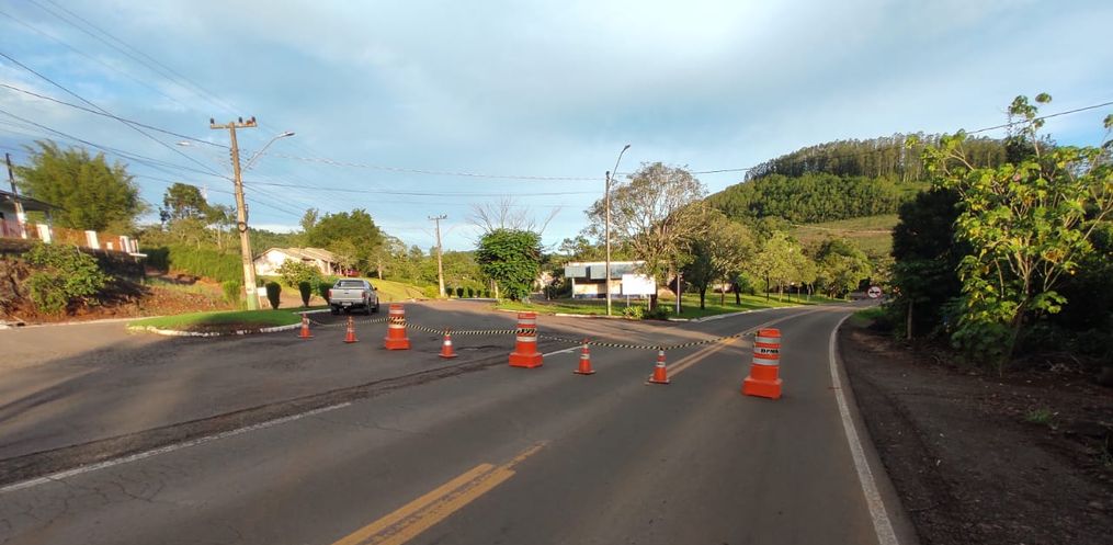 A Polícia Militar Rodoviária está sinalizando o local e a interseção da mesma com a BR-282 e SC-305 como forma de orientar os condutores para os desvios.