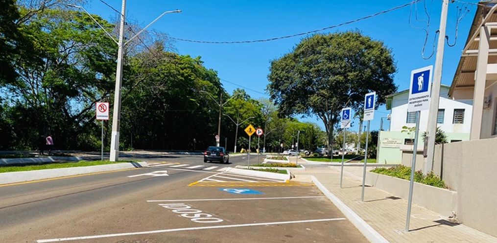 Itapiranga finalmente tem primeira parte da revitalização da Avenida Uruguai em fase de conclusão. O trecho da Praça dos Pioneiros, na entrada da cidade até a Rua Teodoro Treis está praticamente pronto.