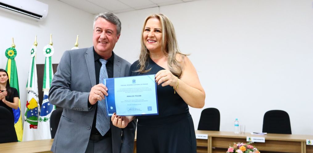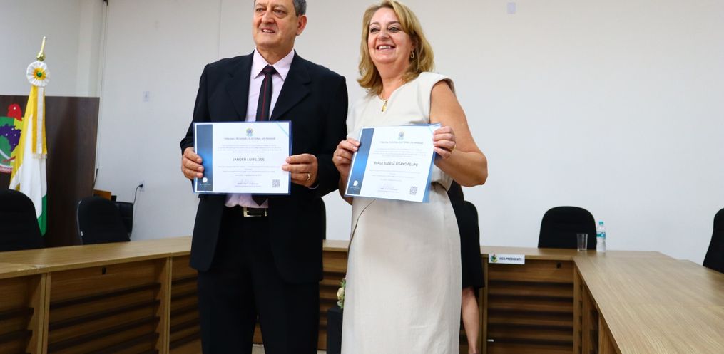 Em Marmeleiro, Jander Loss, eleito prefeito do município, e sua vice-prefeita, Marga Suzana Vigano Felipe, receberam das mãos da juíza da comarca, Renata Matos Fidalgo, o diploma de eleitos e reafirmaram seu compromisso com a comunidade.
