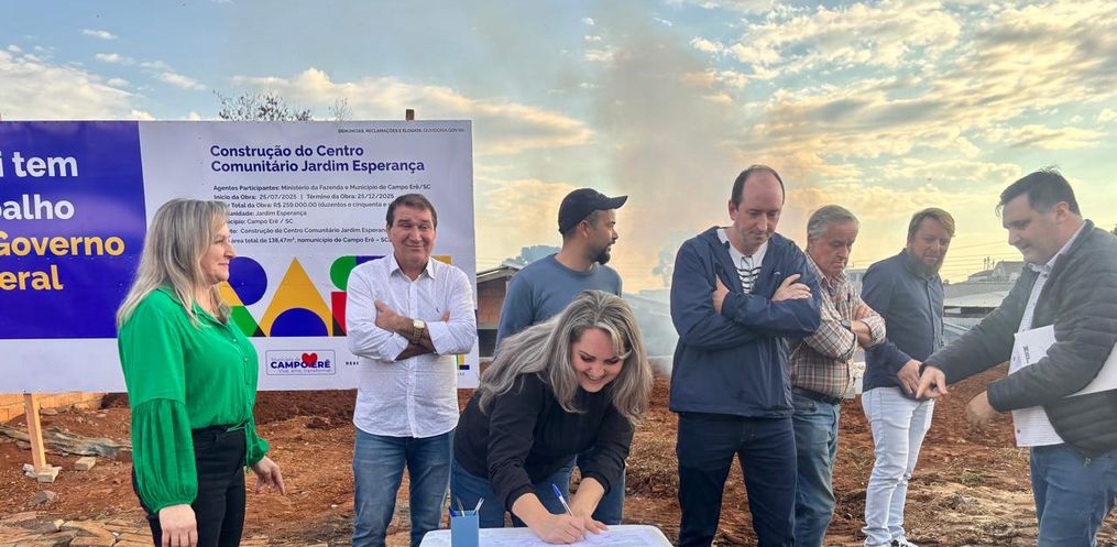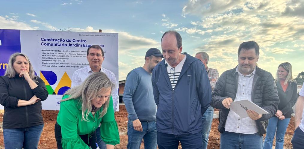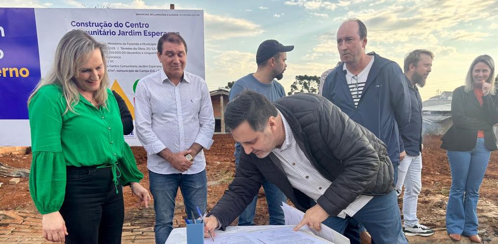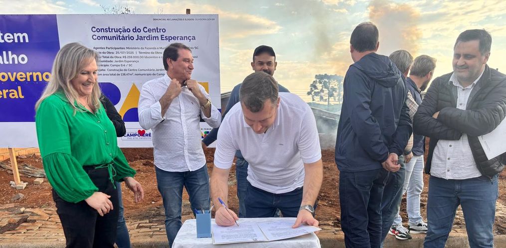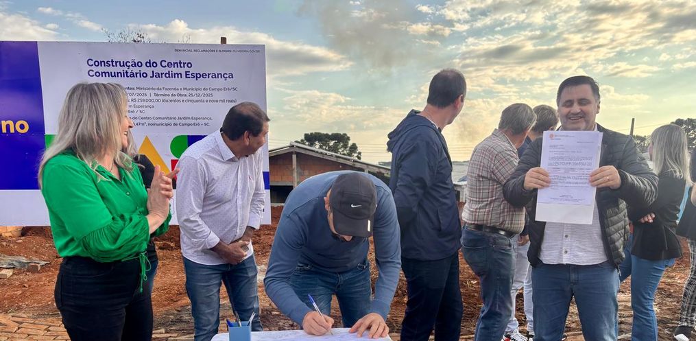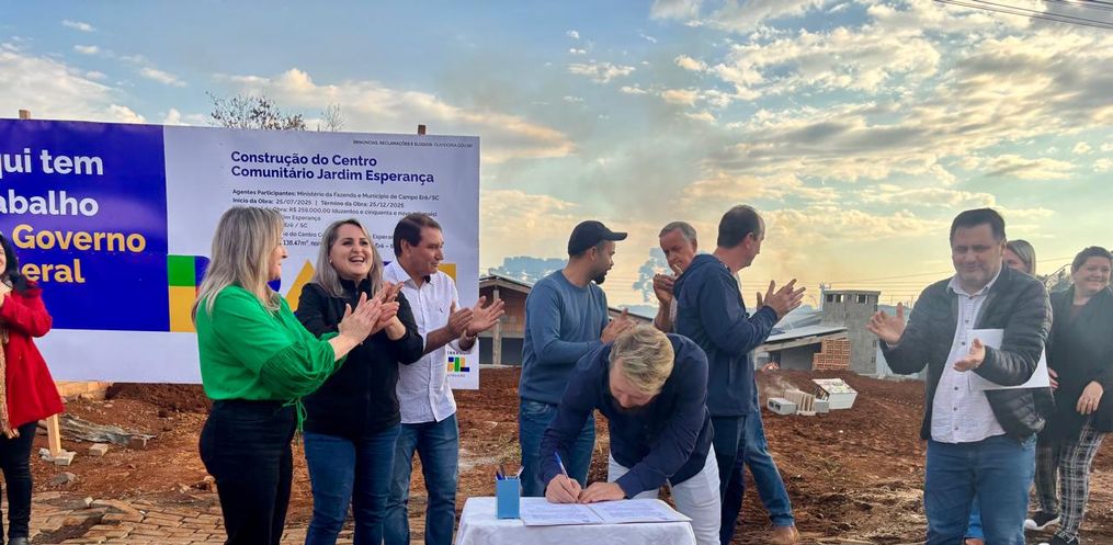 Na tarde de sexta-feira, dia 25 de julho, foi realizada a assinatura da ordem de serviço para a construção do Pavilhão Comunitário do Bairro Jardim Esperança, em Campo Erê. O ato contou com a presença da prefeita Rozane Moreira, de autoridades municipais e de moradores da comunidade, que comemoraram o início da obra.
