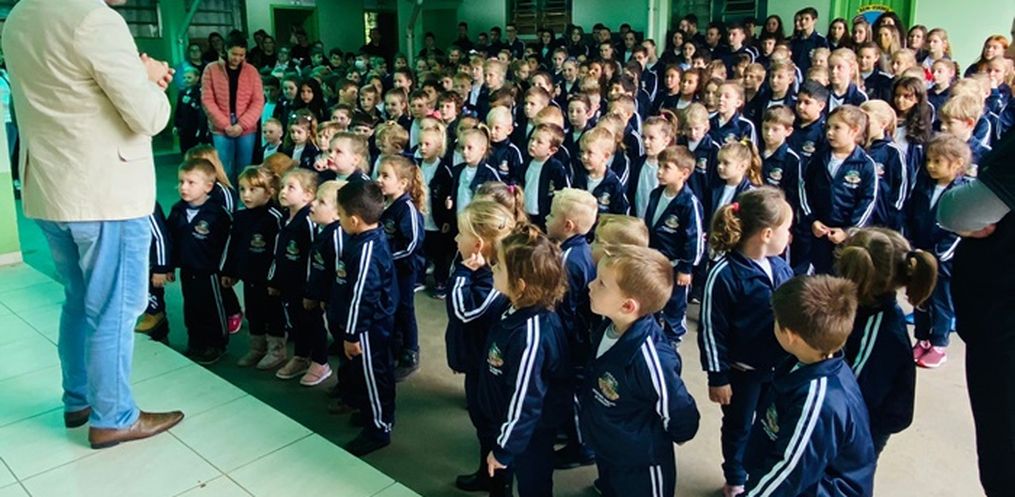 A Secretária recomenda para as famílias identificarem os uniformes para evitar trocas e também crianças que acabam perdendo casacos que são tirados durante atividades na escola. Elaine Mueller também destaca a economia que o uniforme entregue pelo município proporciona no orçamento das famílias.