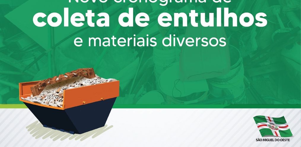 O Município de São Miguel do Oeste iniciou nesta semana um novo cronograma de coleta de entulhos e materiais diversos (exceto lixo orgânico, lâmpadas e sofás), nos bairros e centro.