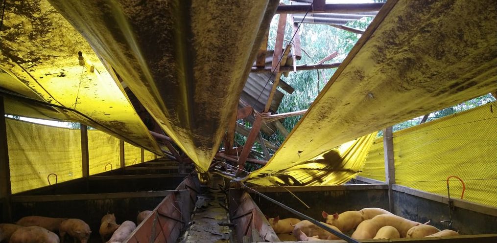 O coordenador da Defesa Civil, Douglas Ribeiro, afirmou que o maior prejuízo foi registrado na granja de suínos, onde uma árvore caiu em cima do telhado e derrubou parte da estrutura. Também foram 12 residências descobertas. Ele comentou que este pavilhão possui um seguro por se tratar de animais em confinamento, sendo que o mesmo cobrirá os danos. Já os imóveis atendidos no perímetro urbano, apenas um era assegurado, os demais precisaram de intenso apoio do órgão municipal. Mesmo as casas em bom estado de conservação, o coordenador destacou que não foi suficiente para impedir a destruição parcial. A orientação é que não haja presença de árvores de grande porte próximo.