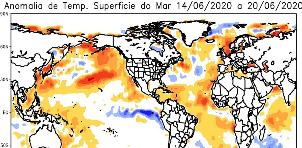 A condição para o trimestre de julho, agosto e setembro indica a persistência do resfriamento nas águas do Pacífico Equatorial em condição de Neutralidade, que tende a continuar evoluindo para a configuração do fenômeno La Niña até o final de 2020.