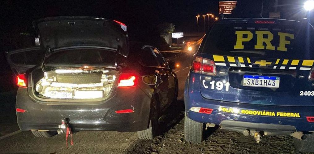 A inspeção do veículo revelou que os tabletes de maconha ocupavam todo o porta-malas e parte do banco traseiro. A vistoria também constatou que o carro tinha placas de Sorocaba/SP com registro de furto/roubo e circulava com placas falsas de outro Cruze de mesmas características.