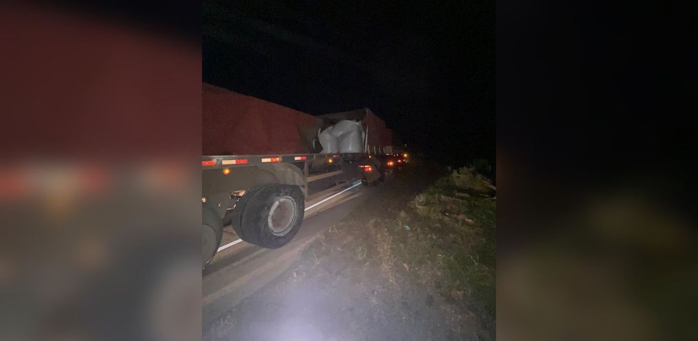 Na noite deste sábado, 8, por volta das 19h30, uma carreta bitrem foi apreendida pela Polícia Rodoviária Federal (PRF) na BR-163, no trevo de Daltro Filho, entre Guaraciaba e São José do Cedro. O veículo foi detido por trafegar fora do horário permitido e derrubar parte de sua carga de adubo na rodovia.