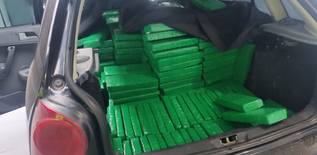 Durante revista veicular foi localizado aproximadamente 680 kg de maconha. Diante dos fatos, foi dado voz de prisão aos envolvidos.