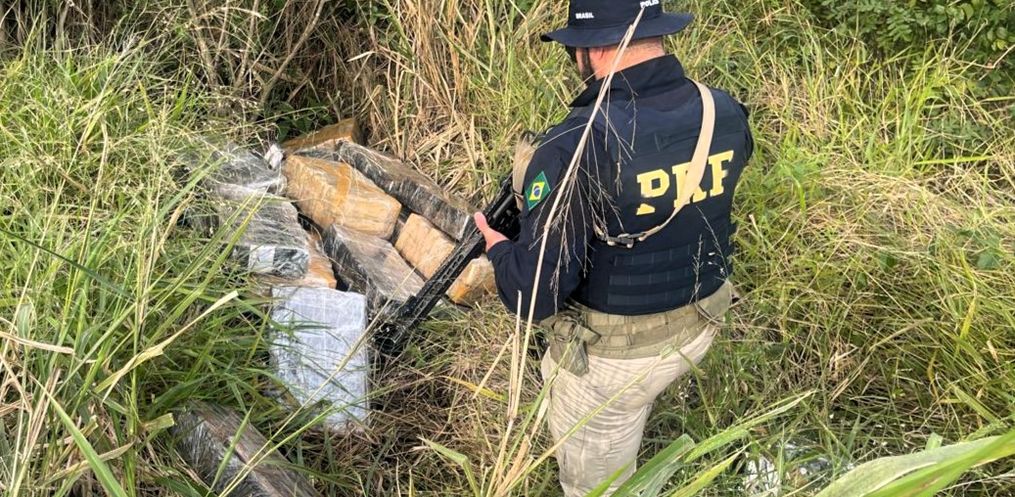 Conforme a PRF, um motorista informou os agentes sobre pacotes suspeitos abandonados no mato. A equipe se deslocou até o local e encontrou os fardos de maconha.