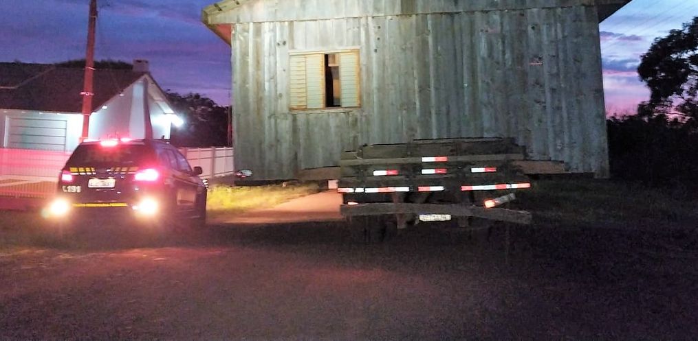 Policiais rodoviários federais flagraram na manhã deste domingo, 21, na BR-282 em Nova Itaberaba, um caminhão transportando uma casa de madeira colocando outros motoristas em risco.