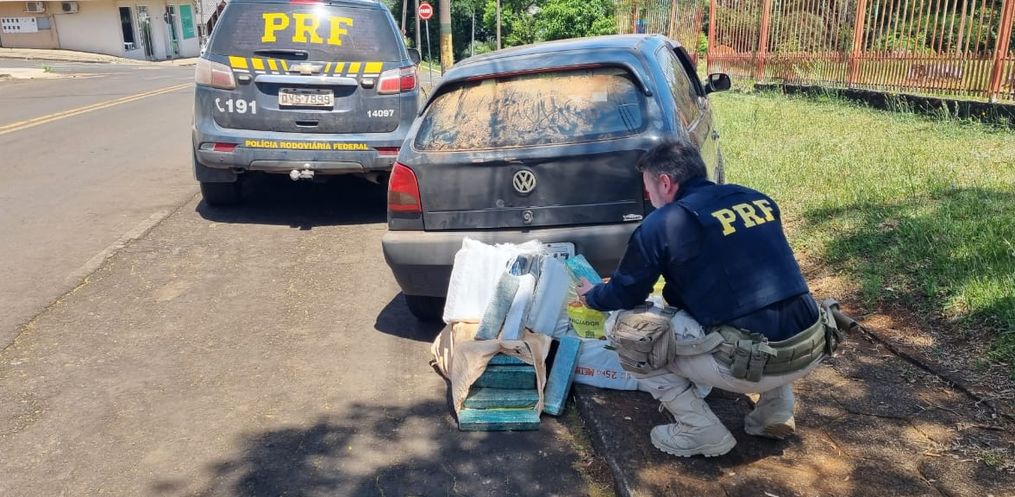 Segundo a corporação, o veículo de modelo Gol foi abordado por agentes durante patrulhamento na citada rodovia. O motorista, assim como o veículo, é de Pranchita/PR. De acordo com a polícia, durante buscas no veículo foram encontrados 103 tabletes com maconha, pesando 100 quilos. O motorista pegou a carga em Santo Antônio do Sudoeste/PR e levaria para Chapecó.