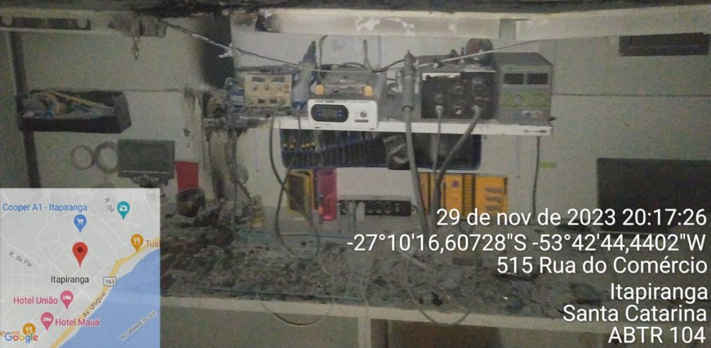 Na sala comercial é realizado manutenção de aparelhos eletrônicos. A guarnição da Polícia Militar auxiliou no atendimento da ocorrência e fez o controle do trânsito.