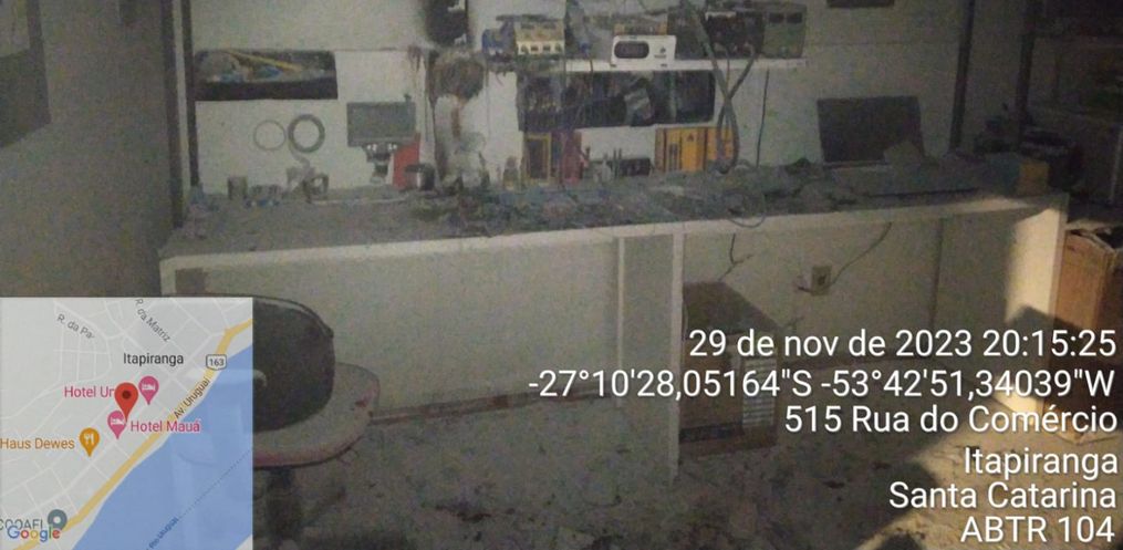 O princípio de incêndio ocorreu em uma sala comercial, no segundo pavimento da edificação. Como o estabelecimento estava trancado e os proprietários não estavam no local foi realizado a abertura forçada da porta para ter acesso ao interior da sala comercial.