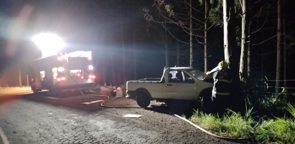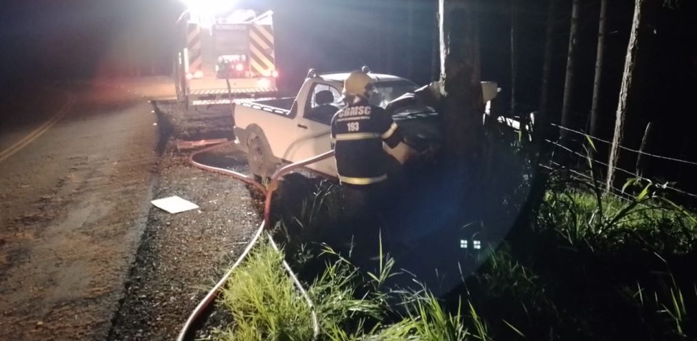 Por volta das 20h30 deste sábado, o Corpo de Bombeiros Militar de são Lourenço do Oeste foi acionado para atendimento a acidente de trânsito do tipo saída de pista seguido de colisão contra árvore, agravado com princípio de incêndio no compartimento do motor do veículo. O acidente ocorreu na rodovia SC-305, nas proximidades da Linha Bela Vista em São Lourenço do Oeste.