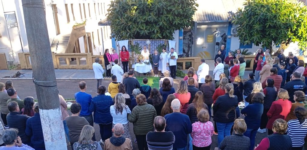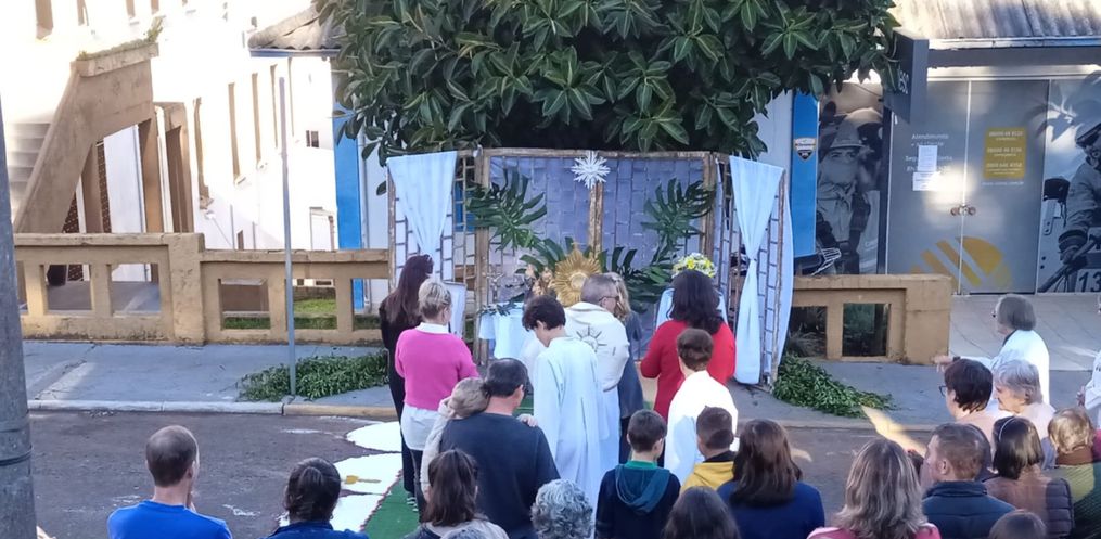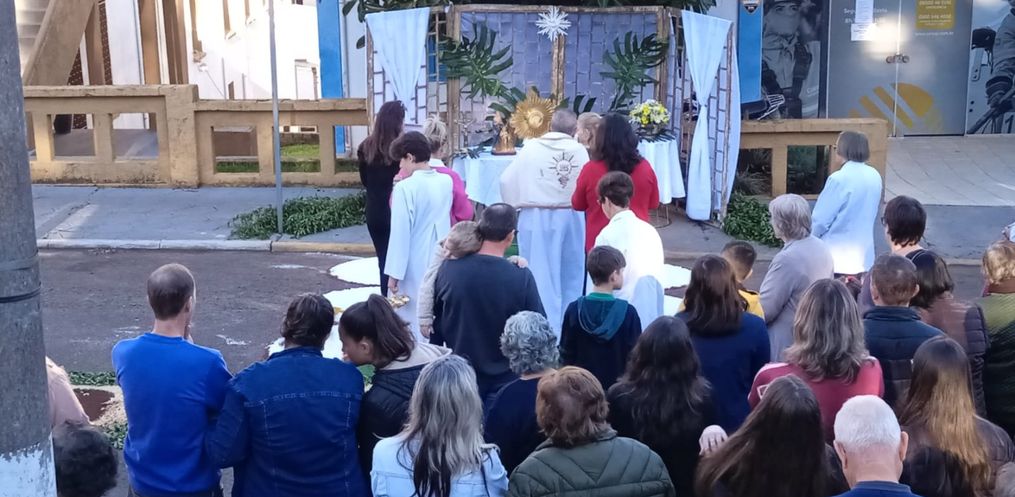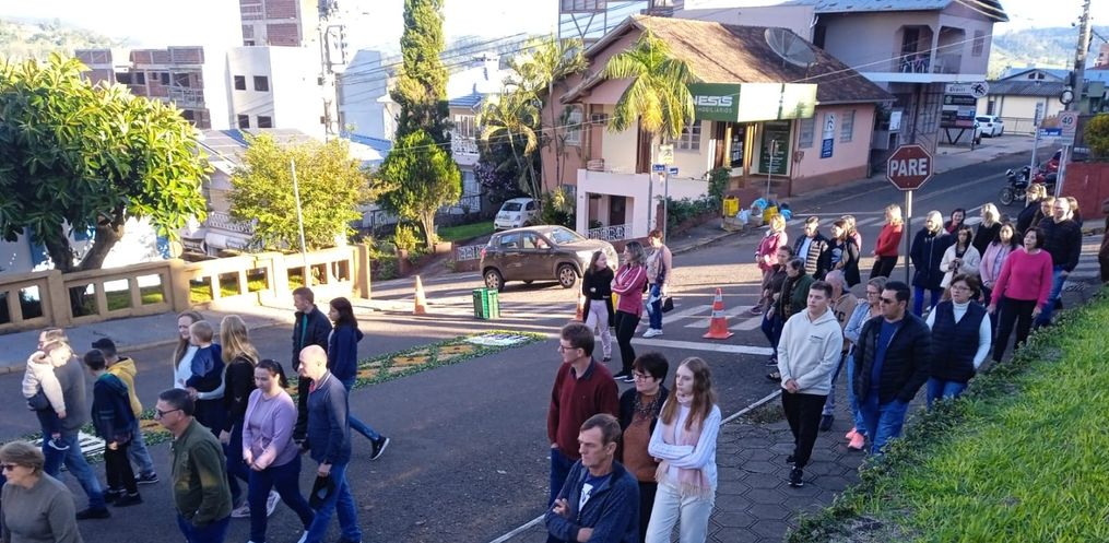 A procissão foi realizada na tarde desta quinta-feira, 30, na Rua São Bonifácio, em frente à igreja Matriz. Os fiéis realizaram a confecção dos tapetes nesta manhã. Diversas associações participaram da procissão neste feriado. A confecção teve participação da catequese, do Núcleo da Mulher Empresária e dos Escoteiros.