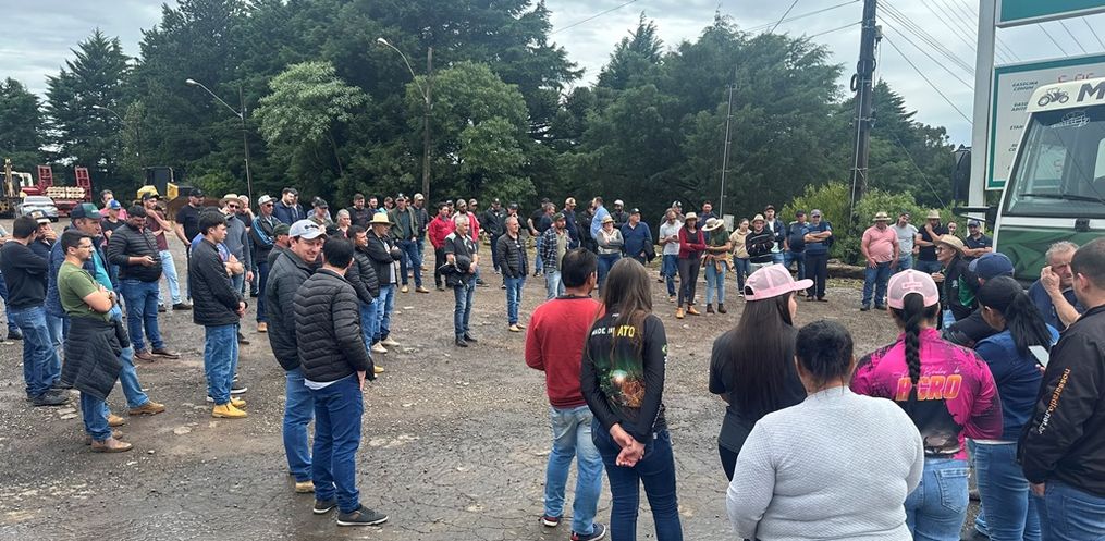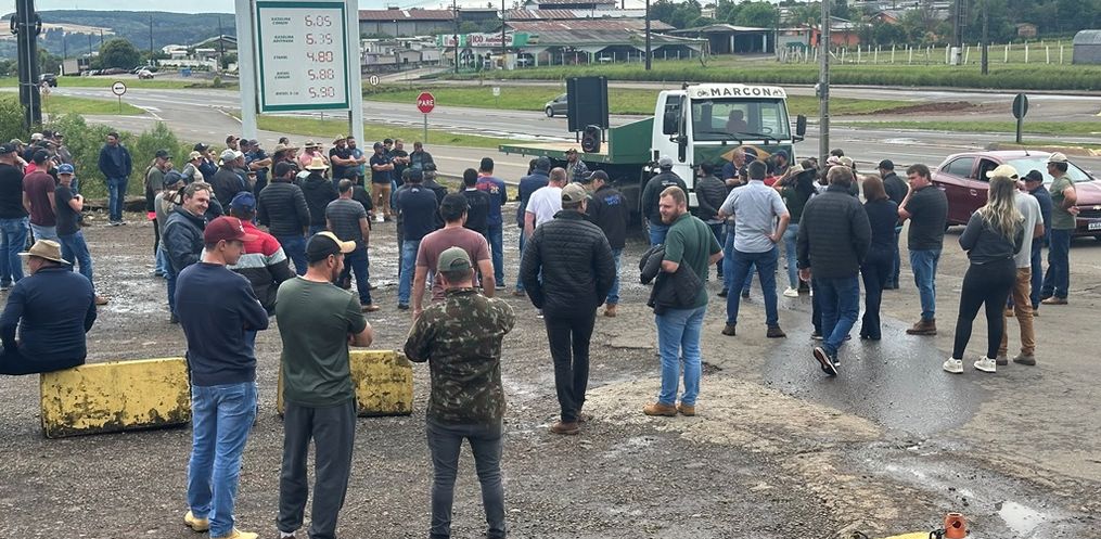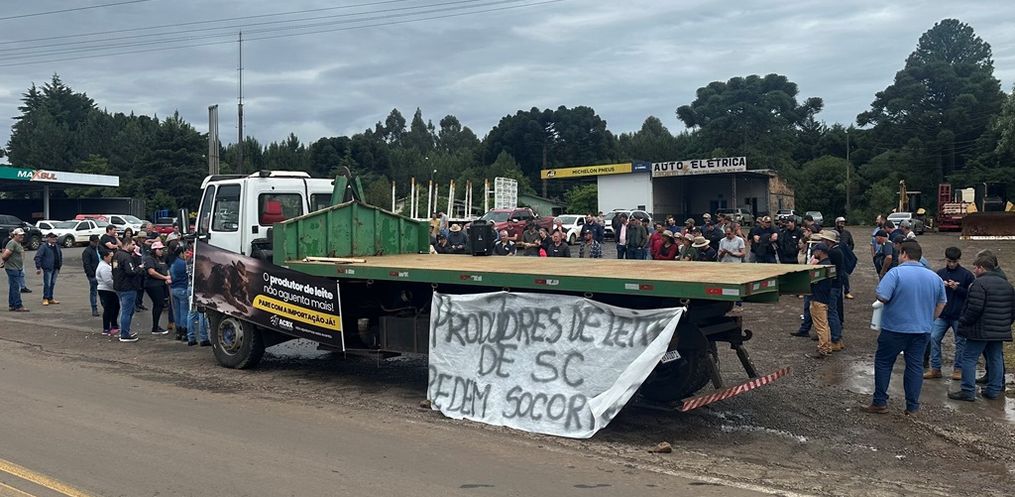 Produtores de leite de vários municípios do Oeste de Santa Catarina se reuniram na manhã desta terça-feira (28) às margens da BR-282, no trevo do distrito de Baía Alta, em Ponte Serrada, para cobrar ações urgentes que aliviem a crise no setor.