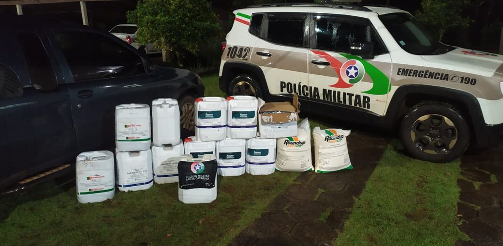 Os policiais militares suspeitaram do carro após visualizarem que a parte de trás do veículo estava rebaixada. Em busca veicular, foi constatado estar carregada com agrotóxicos, produtos esses proibidos no Brasil. Foram apreendidos agrotóxicos de diversas marcas e 20 litros de gasolina, o valor aproximado da apreensão foi avaliada em R$ 38 mil.