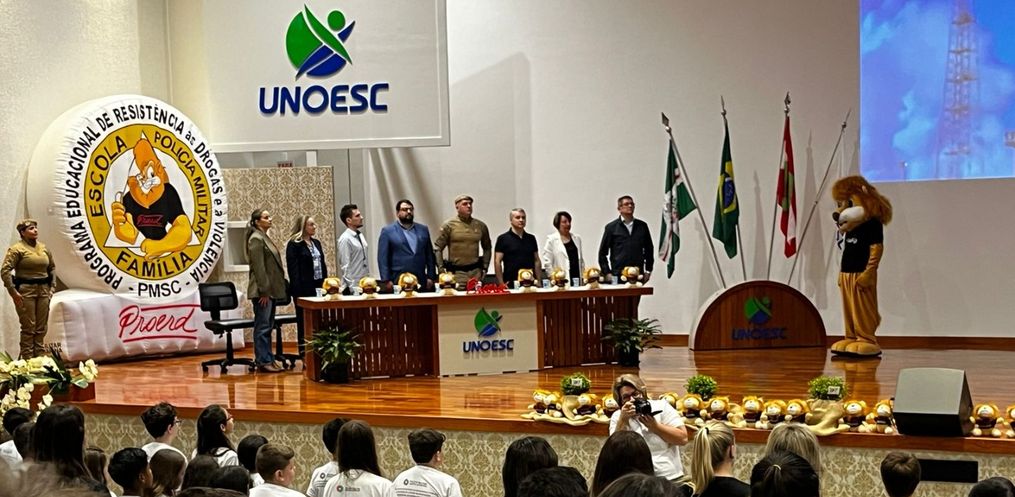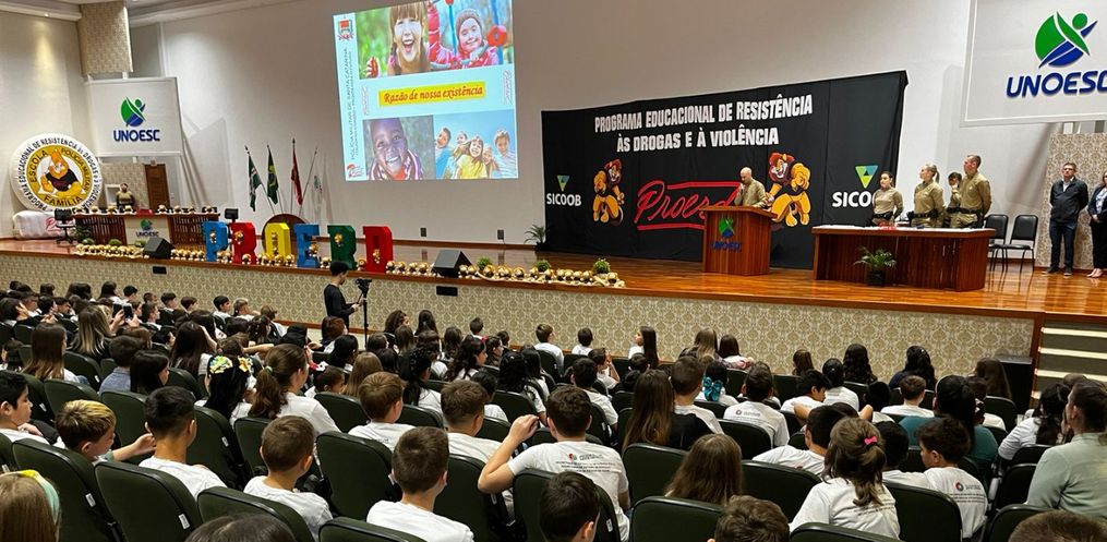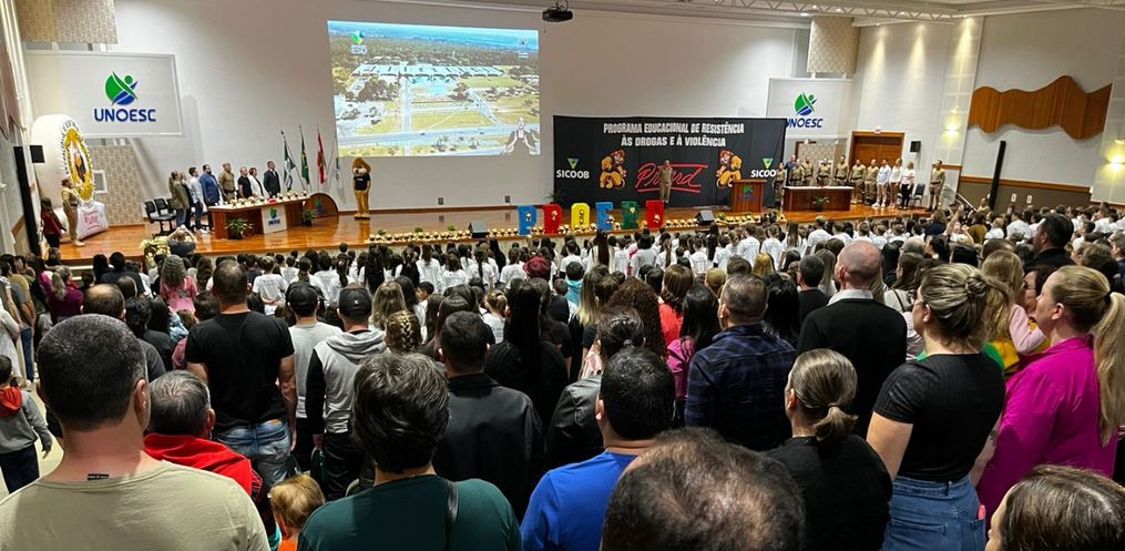 A Polícia Militar realizou na manhã dessa quinta-feira, 4, a formatura de 573 alunos no Programa Educacional de Resistências às Drogas e à Violência (Proerd), em São Miguel do Oeste. O evento foi realizado no Centro Cultural da Unoesc.