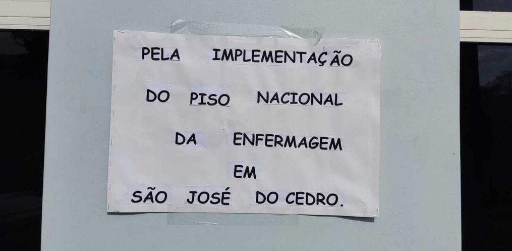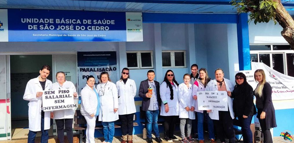 70% dos profissionais de enfermagem de São José do Cedro paralisaram os serviços por 24 horas para protestar contra a suspensão do piso salarial da categoria. O manifesto começou esta manhã de quarta-feira, 21.