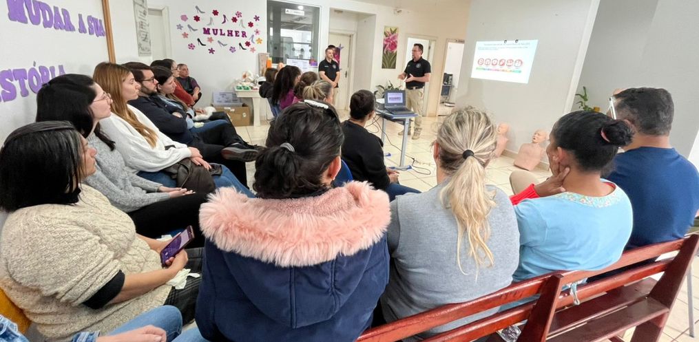 O treinamento utilizou bonecos de simulação realística, desfibriladores de treino e estações práticas, proporcionando aprendizado imersivo e preparo de alta qualidade para situações reais de emergência.