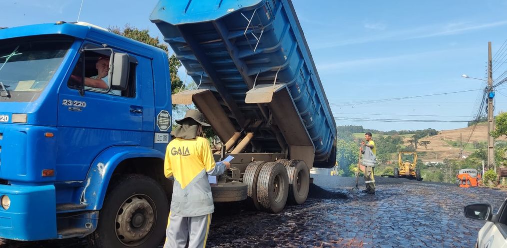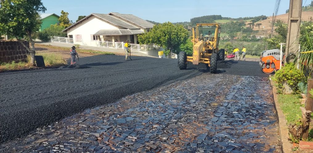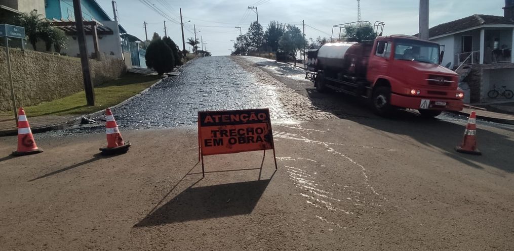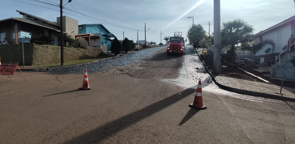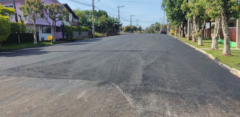 A obra está se dando da seguinte forma: no primeiro momento, acontece a limpeza das ruas, garantindo um ambiente adequado para a pavimentação. Em seguida, uma camada de reperfilagem asfáltica de 4 centímetros é aplicada, preparando o local para receber a camada final de asfalto, com espessura de 3 centímetros.