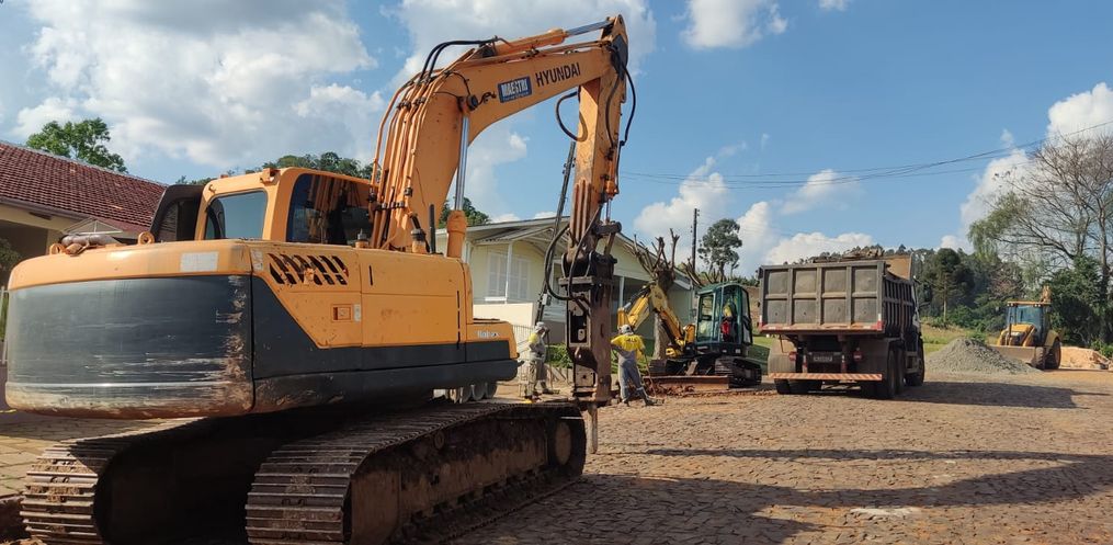 Os serviços neste momento estão voltados para as ruas que necessitam de uma nova rede de drenagem. Isso significa que a equipe está focando os trabalhos nas áreas onde a infraestrutura subterrânea precisa ser aprimorada para garantir a durabilidade e qualidade da pavimentação.