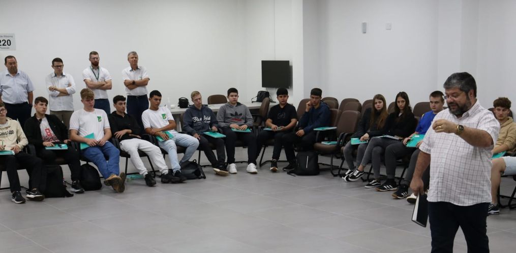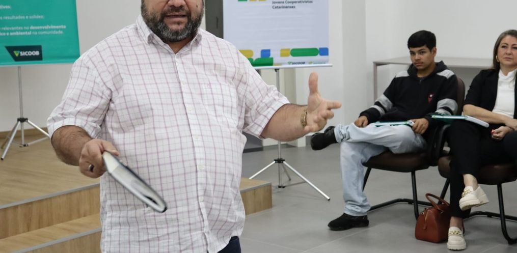 O Programa Jovens Cooperativistas Catarinenses é destinado para alunos do ensino médio noturno como uma atividade integradora. São 40 horas de curso, fora das atividades do período letivo, com um dia por mês. Nesta quinta-feira, 24, o tema foi “Protagonismo Juvenil e Projeto de Vida”, com Ney Guimarães. A professora destaca a importância das capacitações para o aprendizado dos alunos.