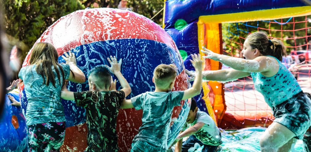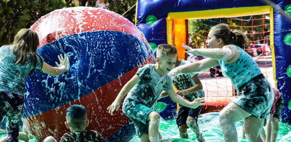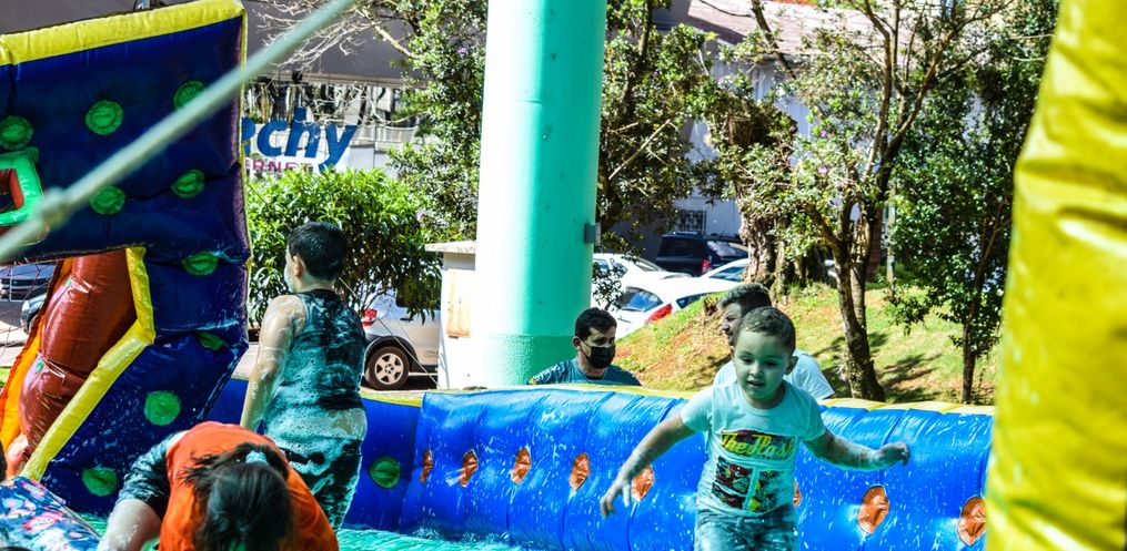 Durante todo o dia as crianças tiveram a disposição, brinquedos infláveis, pintura facial artística e muita diversão.
