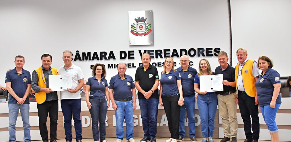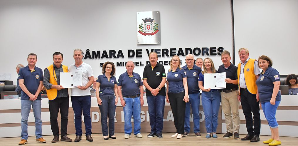 Os vereadores de São Miguel do Oeste aprovaram em dois turnos, nesta semana, o Projeto de Lei 121/2023, de autoria de Moacir Fiorini (MDB) e Carlos Agostini (MDB), que denomina de Lions Clube São Miguel do Oeste a praça pública localizada no cruzamento da Avenida Salgado Filho com a Rua Guanabara, no Bairro Sagrado Coração. O projeto foi aprovado em segundo turno nesta quinta-feira (7), e uma cópia foi entregue a membros do clube de serviço.