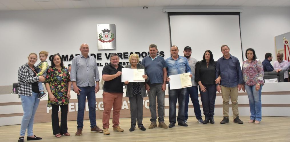 Na noite desta quinta-feira 28, foi aprovado em segunda votação Projeto de Lei Nº 0087/2022 de autoria do vereador, Vilmar Bonora (PSD), a qual denomina de Claudino Perotto a estrada geral, trecho compreendido entre a comunidade da Linha Santa Catarina e a comunidade da Linha Barra do Guamirim, no interior do município de São Miguel do Oeste, estado de Santa Catarina, e dá outras providências. A família de Claudino Perotto esteve presente na sessão para prestigiar a homenagem e receber das mãos do vereador que protocolou e apresentou o Projeto de Lei.
