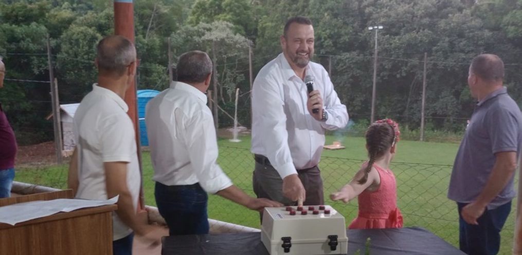 O ato de inauguração do projeto de recalque de água do Rio Jundiá foi realizado na noite desta quarta-feira, 28, na Sociedade de Linha Vale Pio - São João do Oeste, com a presença de moradores da comunidade, servidores públicos e autoridades regionais.