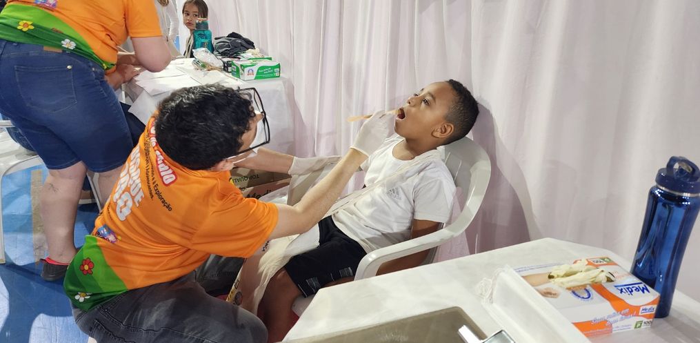 Ocorre ainda atendimento odontológico com os pequenos e teatro, abordando o dia nacional de combate ao abuso infantil. Elaine destaca a importância do olhar de cuidado para as crianças.