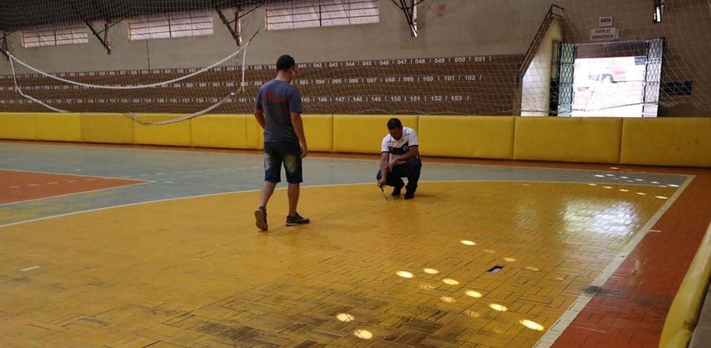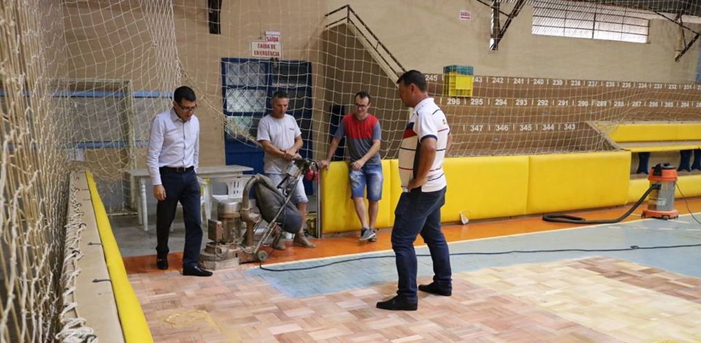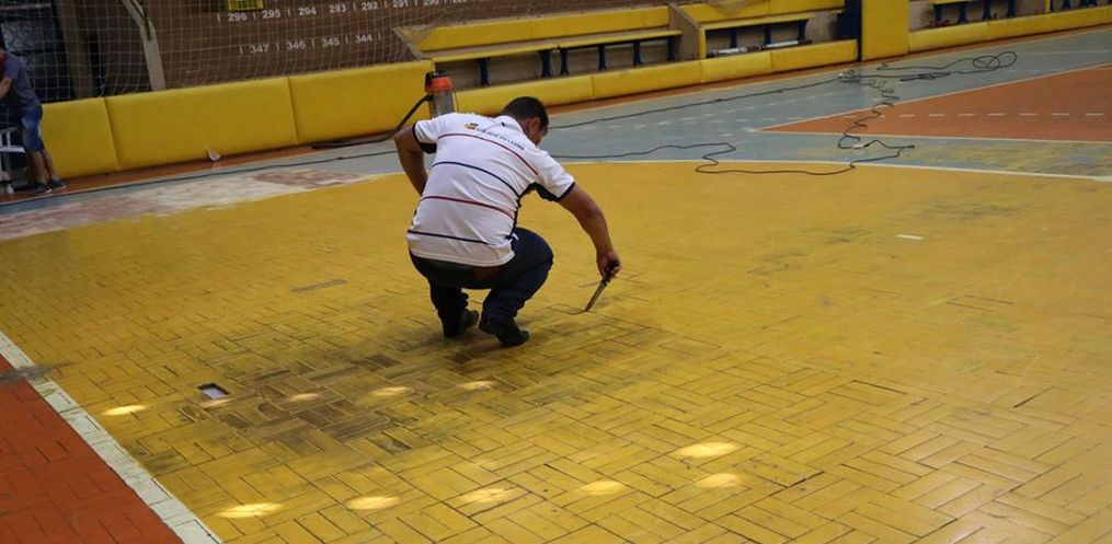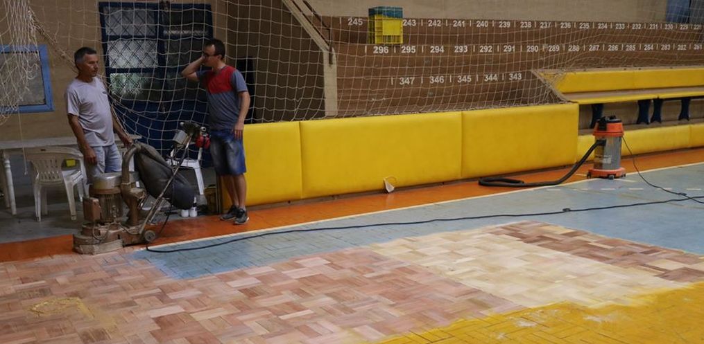Os trabalhos iniciaram nesta semana, segundo o Secretário de Esportes Odair Maziero. Serão substituídos os tacos que estão danificados no Ginásio Lauté Weber. Em seguida a quadra será completamente lixada e receberá uma nova pintura.