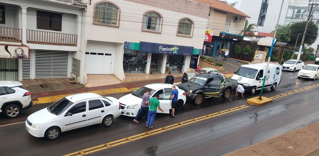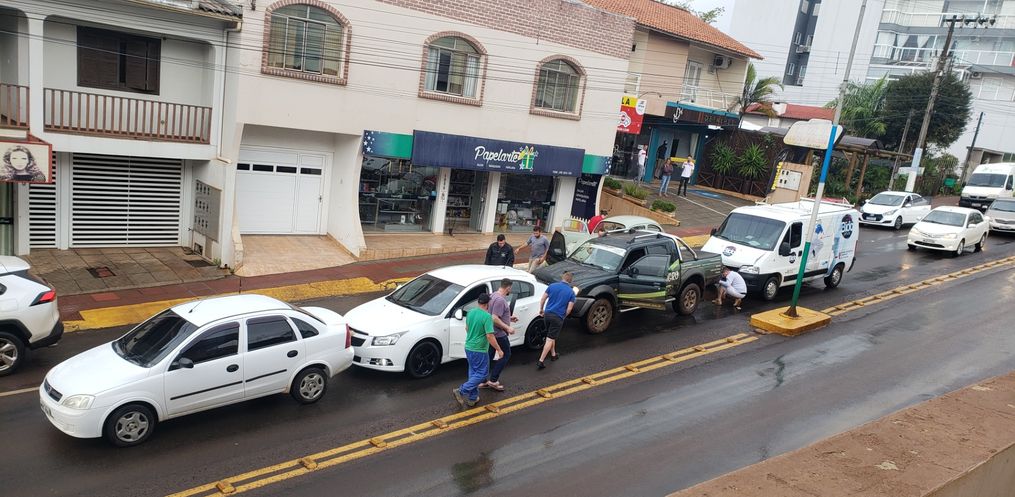 Um engavetamento envolvendo quatro veículos foi registrado por volta das 13h25 desta segunda-feira, 07, na Avenida Gustavo Fetter, no centro da cidade de Iporã do Oeste.