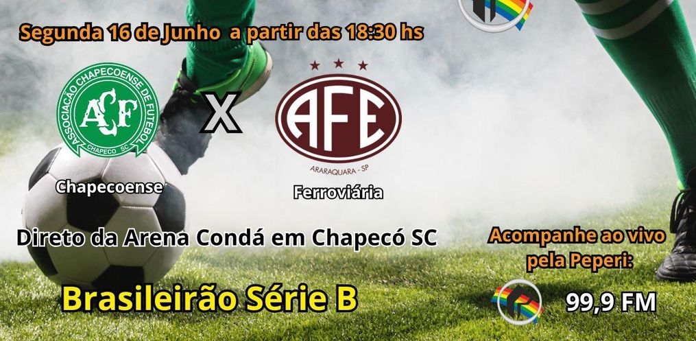 A Rádio Peperi, de São Miguel do Oeste, transmite ao vivo nesta segunda-feira, 16, o confronto entre Chapecoense e Ferroviária, válido pela 12ª rodada do Campeonato Brasileiro da Série B. A cobertura será direto da Arena Condá, em Chapecó, com início por volta das 18h30. A bola rola às 19h.