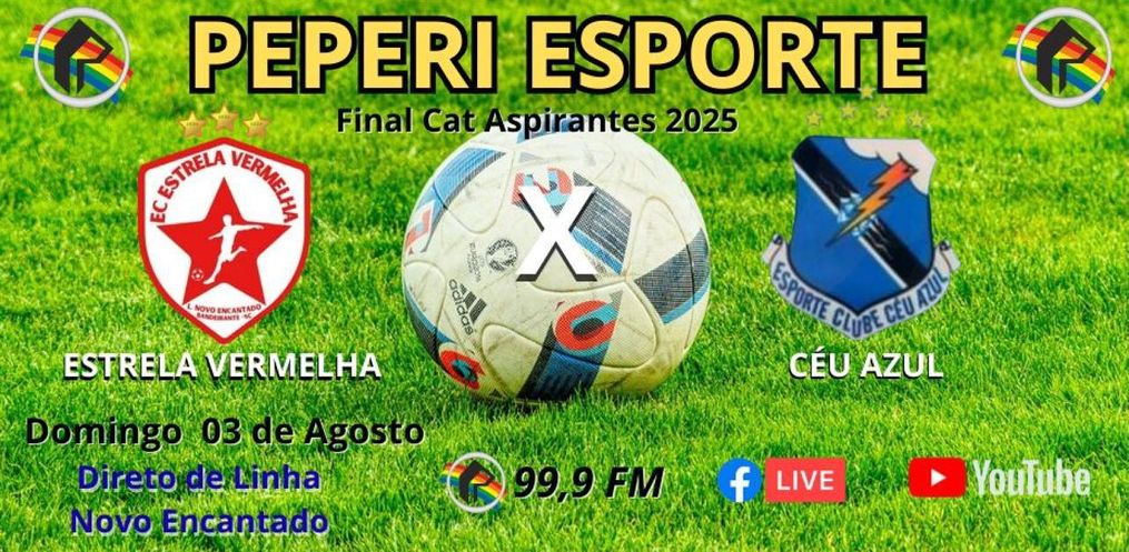 A Rádio Peperi FM 99,9 transmite ao vivo, neste domingo, 3, a final da Categoria Aspirante de Futebol 2025. A partida será entre as equipes Estrela Vermelha e Céu Azul.