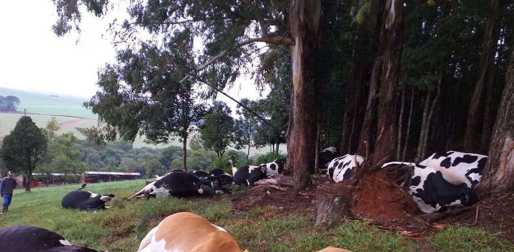 Proprietários acabaram tendo um grande prejuízo na madrugada desta terça-feira, 14, em Ouro Verde. 16 vacas morreram com uma descarga elétrica, na propriedade localizada na Linha Pinheiro Marcado, interior do município.