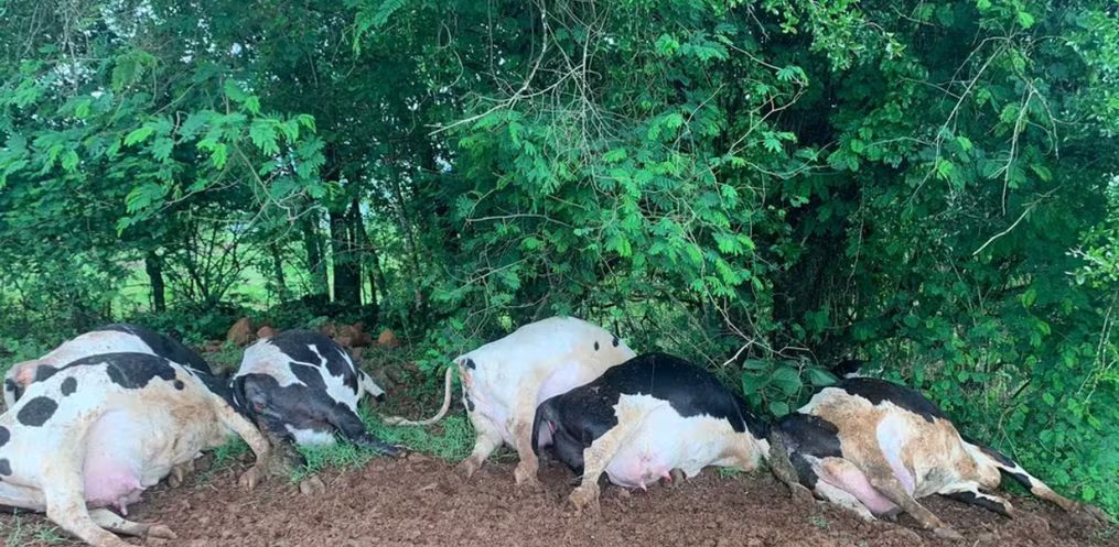 Sete vacas holandesas morreram por conta de um raio em uma propriedade rural na cidade de São José do Cedro, nesta terça-feira, 8. Um médico veterinário que esteve no local atestou a causa da morte. O prejuízo estimado é de cerca de R$ 70 mil.