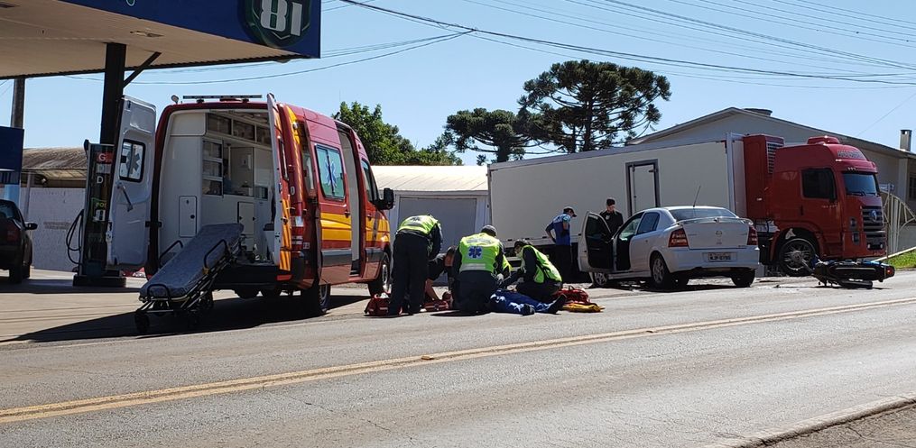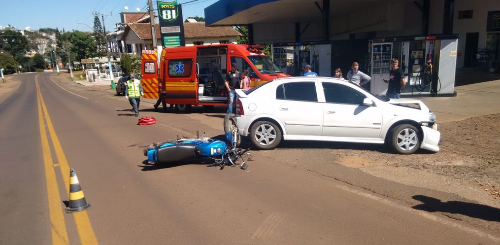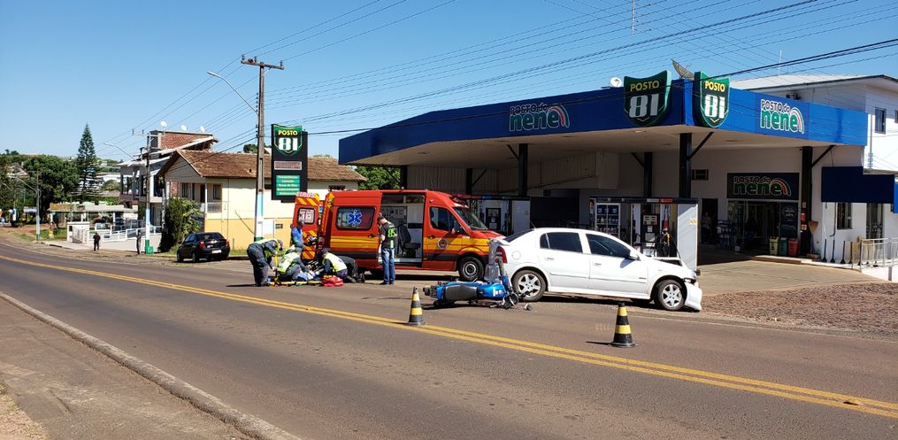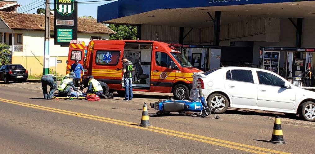 O acidente ocorreu por volta das 13h30 deste sábado na Avenida Gustavo Fetter, em frente ao Posto do Nenê, em Iporã do Oeste.