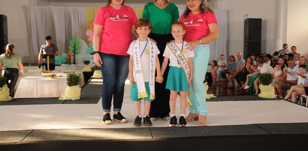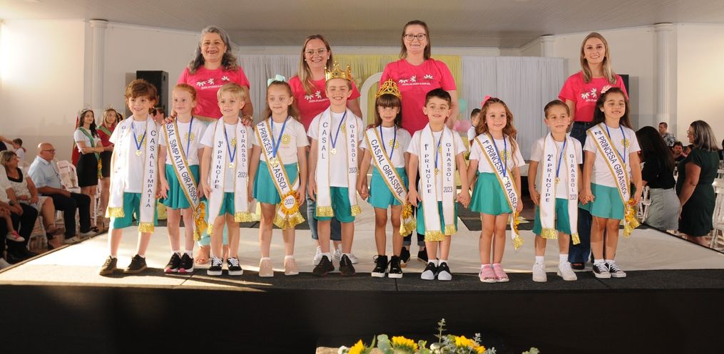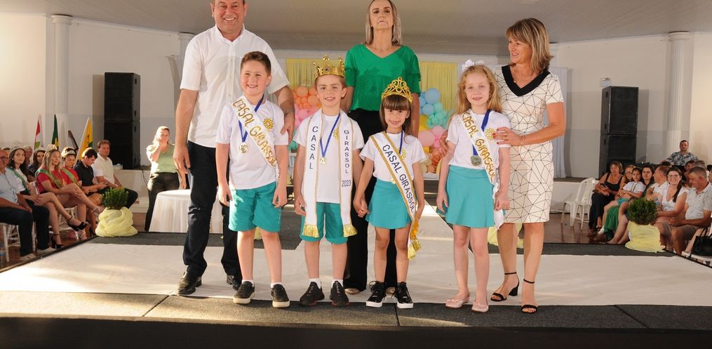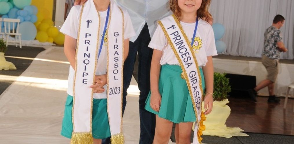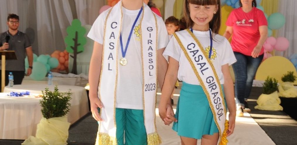 O casal escolhido neste ano recebeu das mãos do Prefeito João Luiz de Andrade, da Diretora da Escola Vera Inêz Sholl e do casal de 2022, Francisco Baú Andrighi e Rafaela Beatriz Dill, as faixas e a coroa que os intitula Casal Girassol 2023.