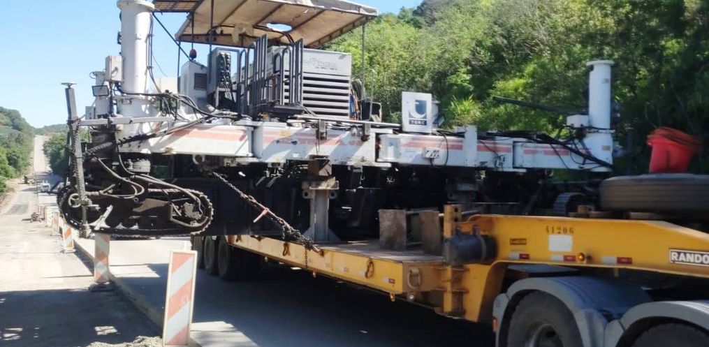 Terminou por volta das 09h30 o transporte da máquina pavimentadora da BR-163, no extremo-oeste, até a altura da Guataparema, em Guaraciaba. O trabalho de deslocamento tinha iniciado próximo das 07h30 desta sexta-feira, 18.