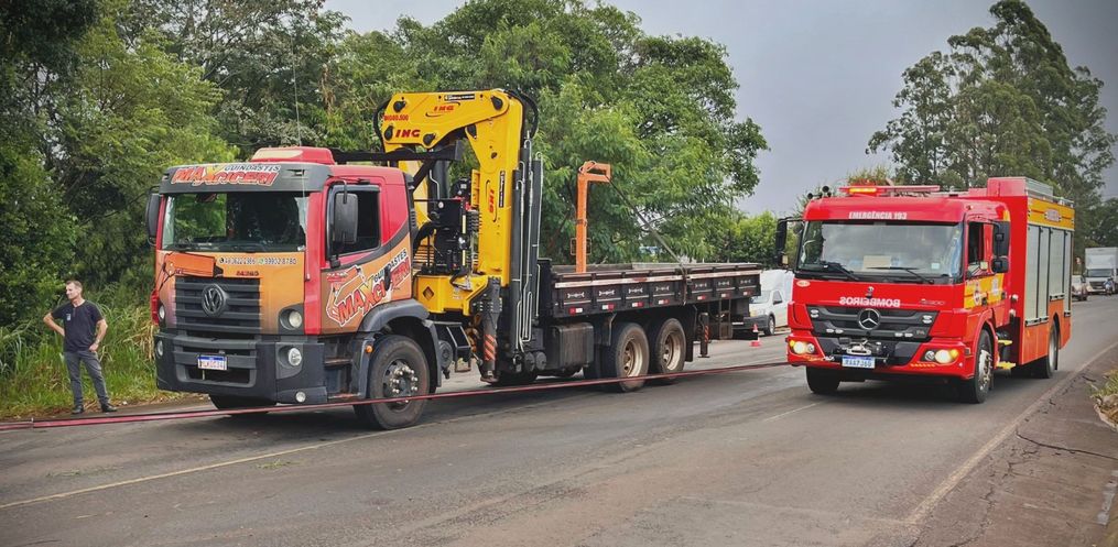 O Corpo de Bombeiros foi acionado e, com o apoio de populares, conseguiu puxar o reboque de volta para a pista e resgatar os animais. Durante o trabalho de retirada, o trânsito na BR-282 precisou ser totalmente interditado nos dois sentidos.