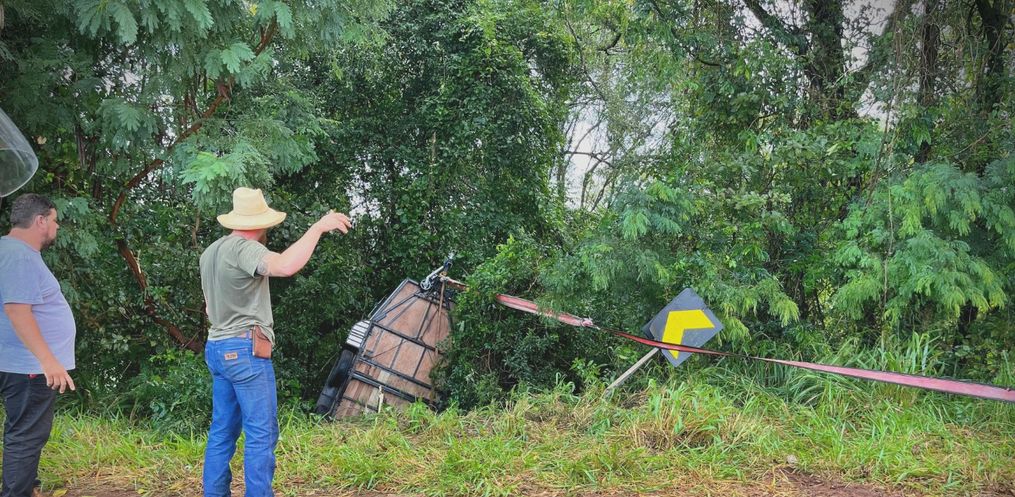 Um reboque transportando dois cavalos se desprendeu de uma caminhonete, saiu da pista e capotou em um barranco às margens da BR-282, nas proximidades do trevo de acesso a São Miguel do Oeste. O acidente foi por volta das 16h50 dessa quinta-feira, 3.
