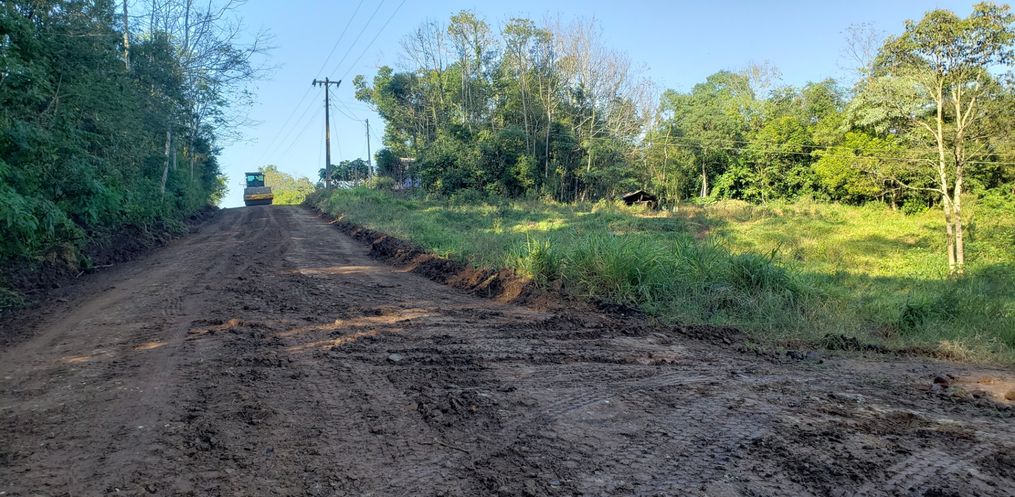 No início desta semana, as máquinas começaram o patrolamento, escarificação, limpeza das sarjetas, cascalhamento e compactação da estrada. O Município está custeando a recuperação da via com recursos próprios e uma grande equipe está empenhada nos trabalhos.