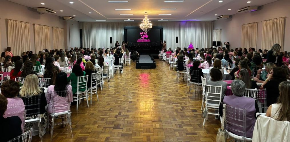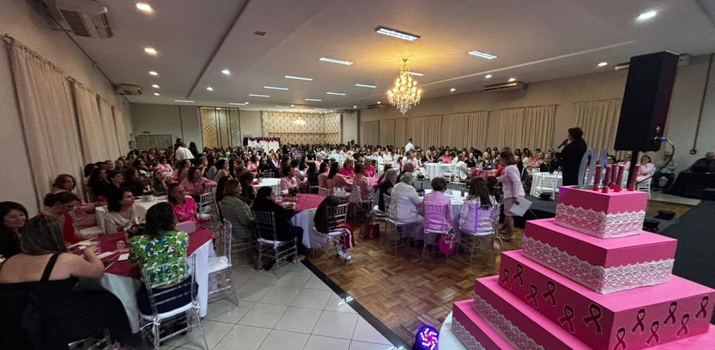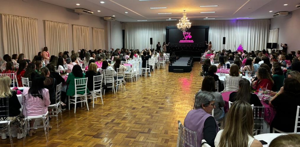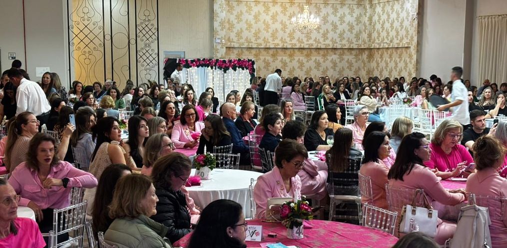 A Rede Feminina de Combate ao Câncer de São Miguel do Oeste celebrou, na noite desta quinta-feira, 2, os 40 anos de atuação da entidade no município. O evento ocorreu no Clube Comercial e reuniu 445 mulheres, além de convidados, em uma noite marcada por emoção, reconhecimento e fortalecimento do trabalho voluntário.