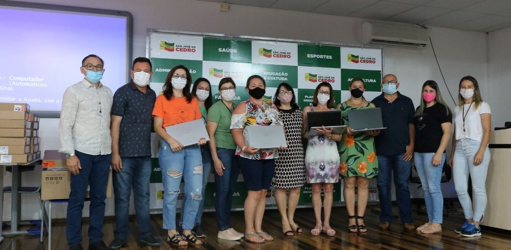 Na manhã desta terça-feira, 23, ocorreu a entrega de computadores portáteis para todos os professores efetivos da rede municipal de ensino de São José do Cedro e equipes pedagógica das escolas. O ato simbólico da entrega ocorreu no auditório do Cemeg antes da palestra sobre autismo que acontece nesta manhã.